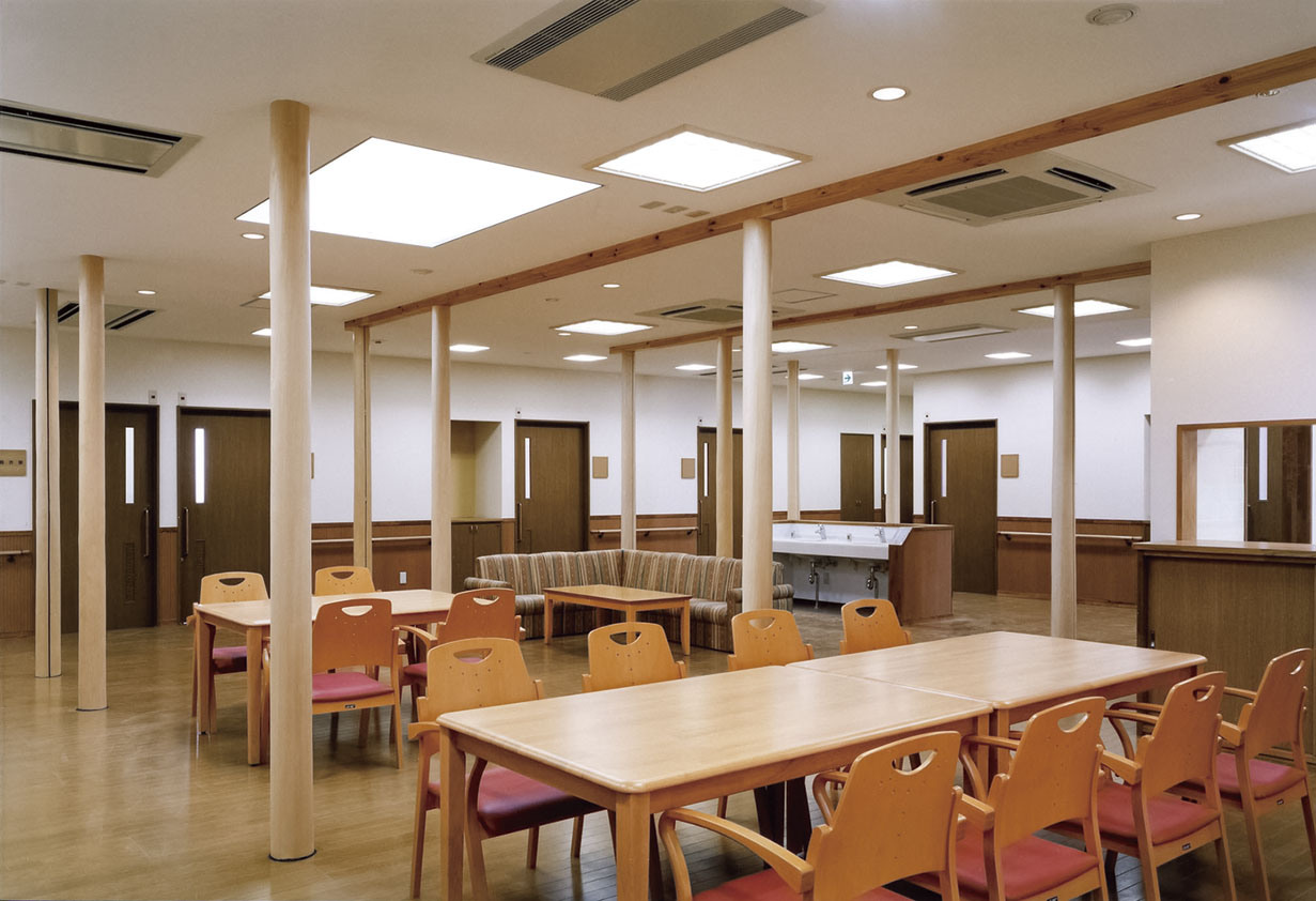 | 諸設備 | <居室部分> 冷暖房エアコン・洋式トイレ・洗面器・ミニキッチン・収納・ナースコール・スプリンクラー・火災報知器・TVアンテナ・各自で電話設置可能 <共用部分> エレベーター・自動販売機コーナー・健康管理室・一般浴室・ヒノキ製浴槽・車イス用浴室・個人浴室・放送設備・冷暖房エアコン・ナースコール・スプリンクラー・火災報知器・非常通報装置 |