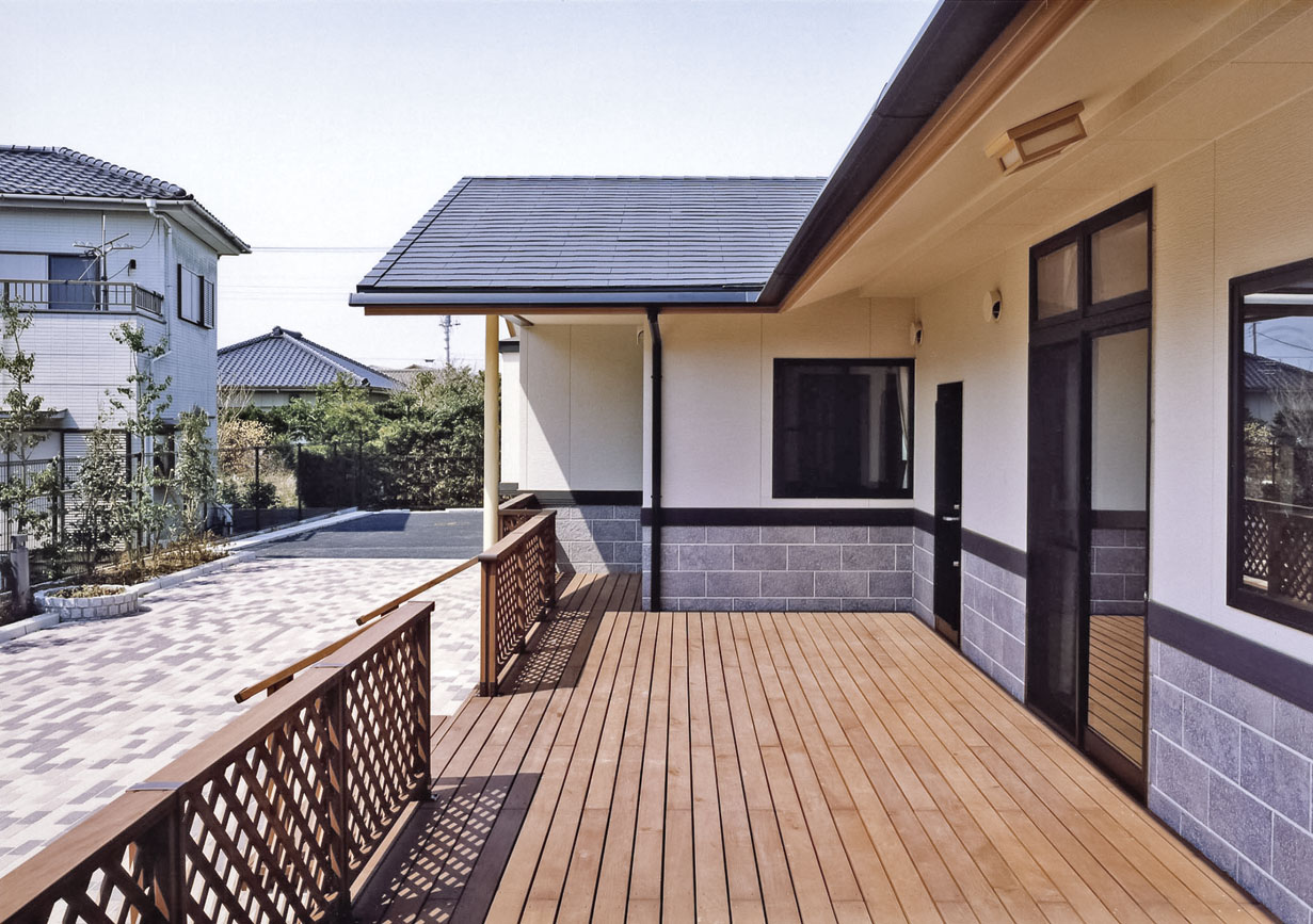 ■共用施設設備:ウッドデッキ/菜園 ■バリアフリー対応施設のため、段差はなく、ホール内・各トイレ・浴室に手すりを設置。玄関には車椅子でも対応可能なスロープを設置。
